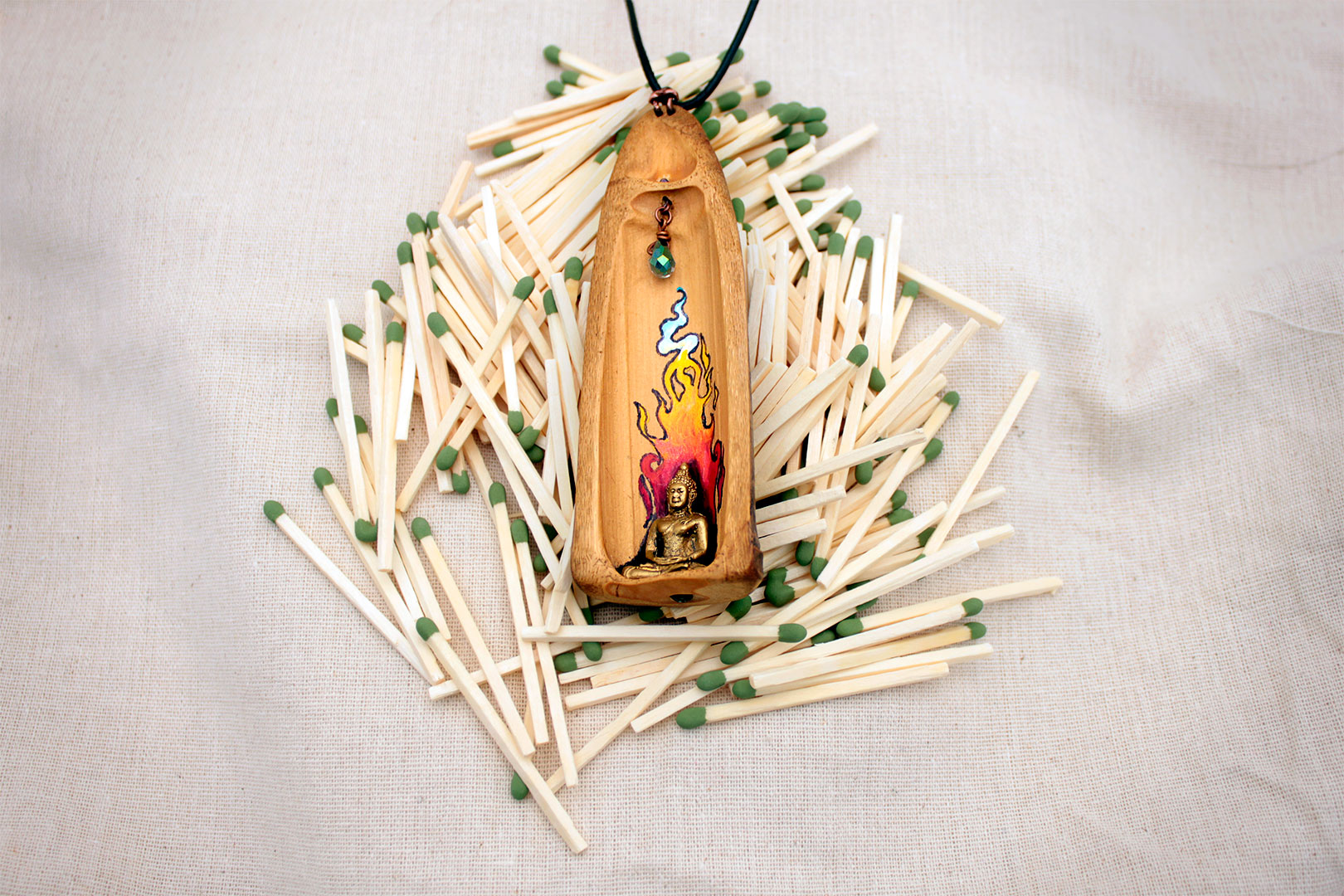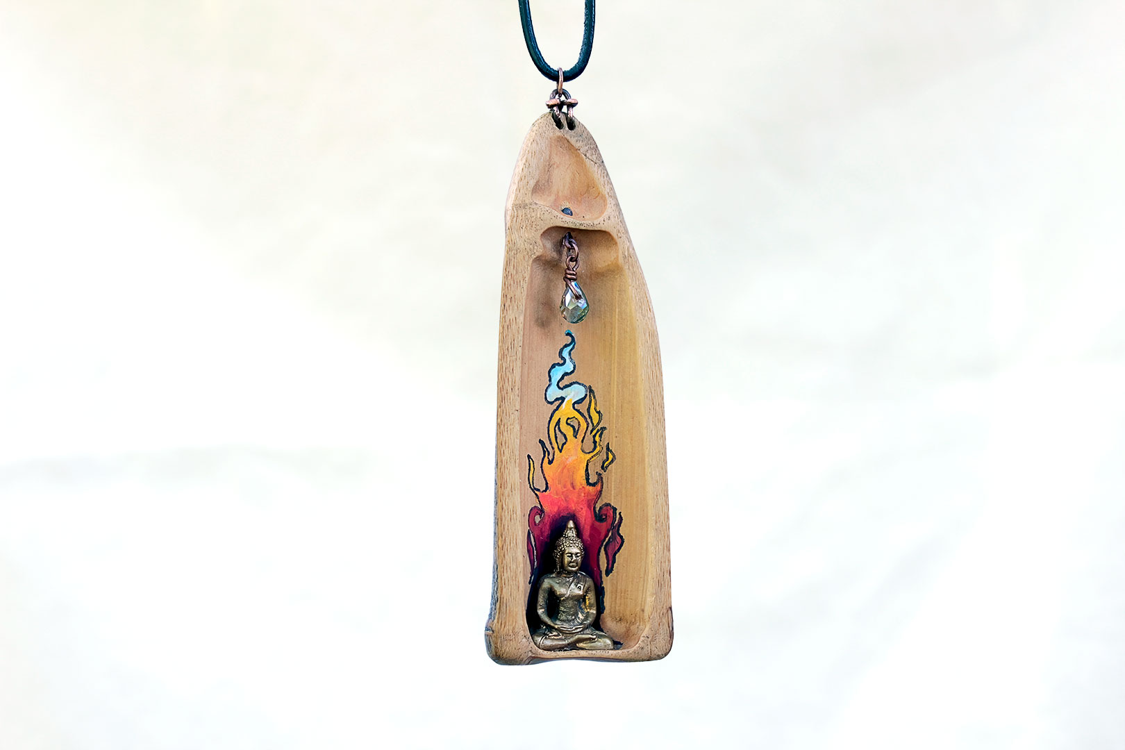 Step Right Up, Dear Wanderers, and Let Me Weave a Tale of a Necklace that Dances with the Spirit of Festivals! Picture, if You Will, a Slice of Bamboo, Caressed by Skilled Hands and Transformed into a Canvas for the Wild Flames of Passion and Creativity. Yes, My Friends, it is a Necklace Adorned with a Slice of Bamboo, Hand-Painted with the Mesmerizing Hues of Fire!