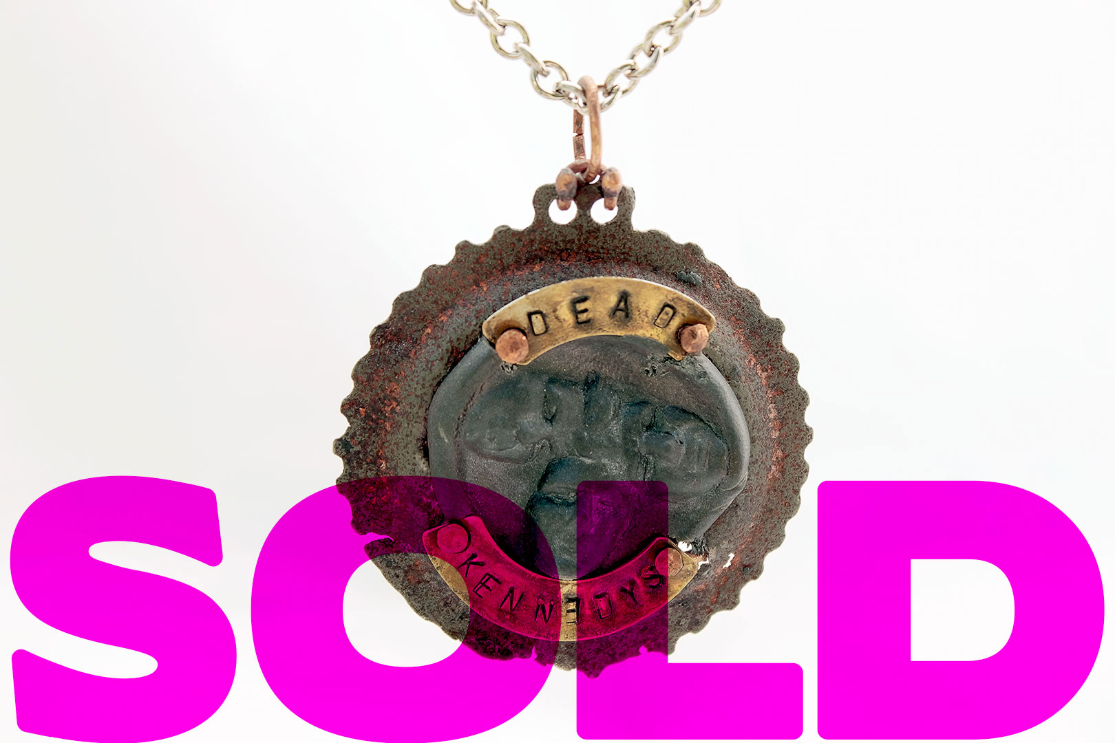 Embrace the Rebellious Spirit of the Dead Kennedys With this Captivating One-Of-A-Kind, Found Object Necklace, a Wearable Homage to Their Groundbreaking Legacy. Crafted From an Array of Found Objects, Each Piece Combined to Symbolize the Band’s Defiance and Unyielding Passion for Change.