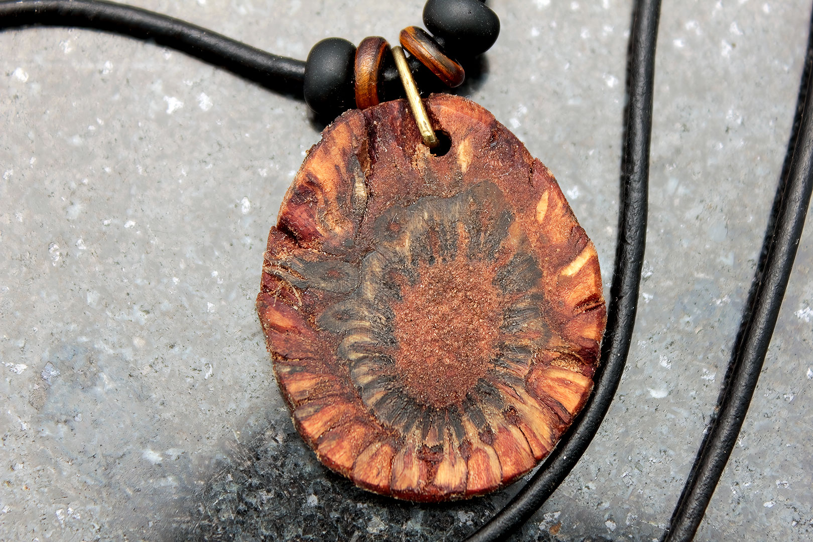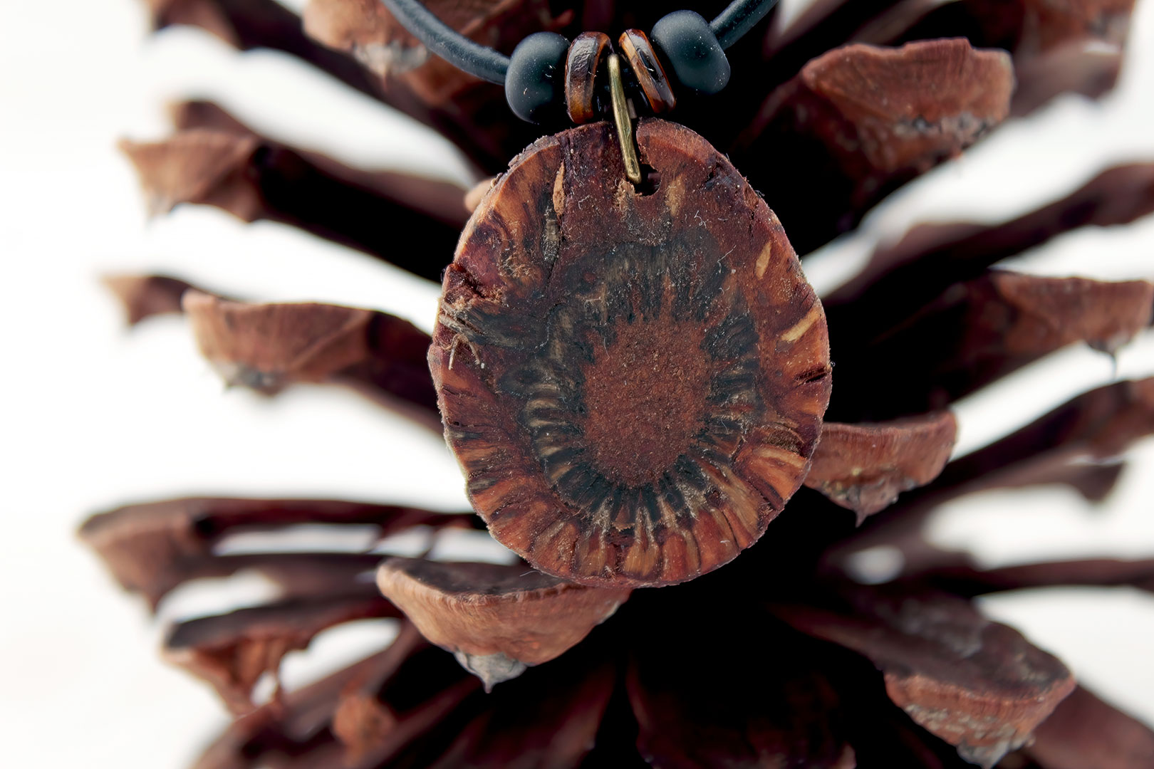 Observe the Intricate Beauty of a Necklace Crafted from a Slice of Pine Cone. The Wild Pattern Displayed Within the Core of the Cone is like a Window into the Tree’s Soul, Displaying Nature’s Artistry in all its Glory. The Organic, Irregular Lines and Shapes on the Slice Reveal the Inner Workings of this Remarkable Cone, Providing a Glimpse into the Life Cycle of the Tree it Once Adorned. It Tells a Story of Growth, Resilience, and the Passing of Time.
