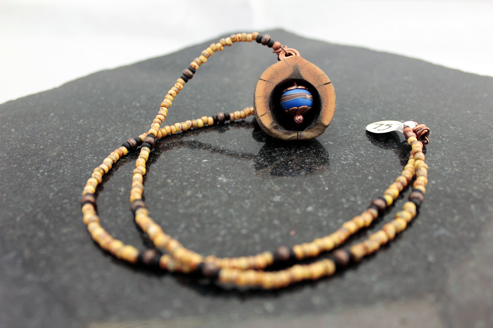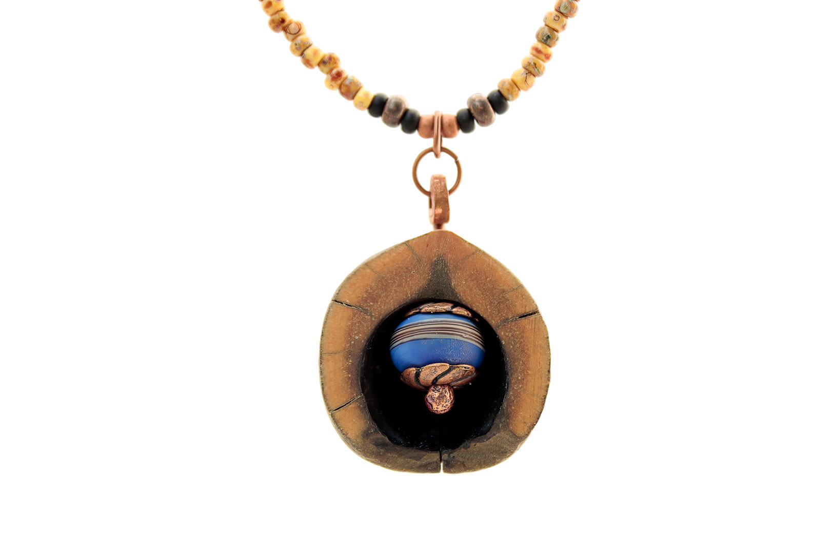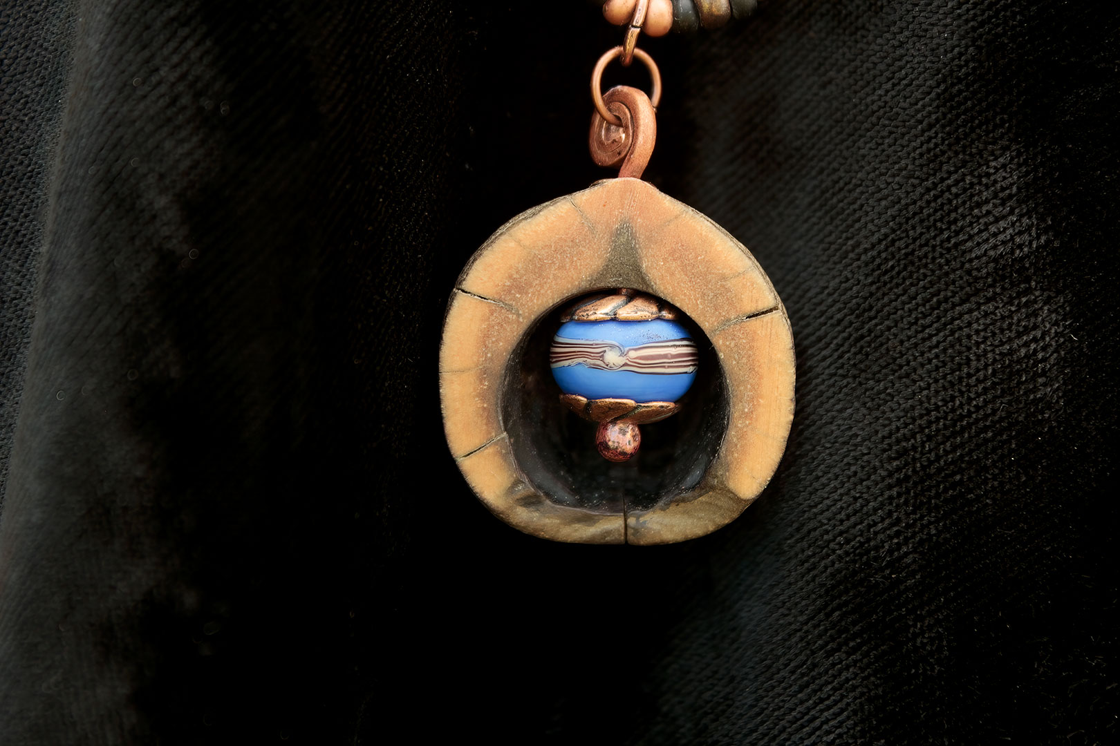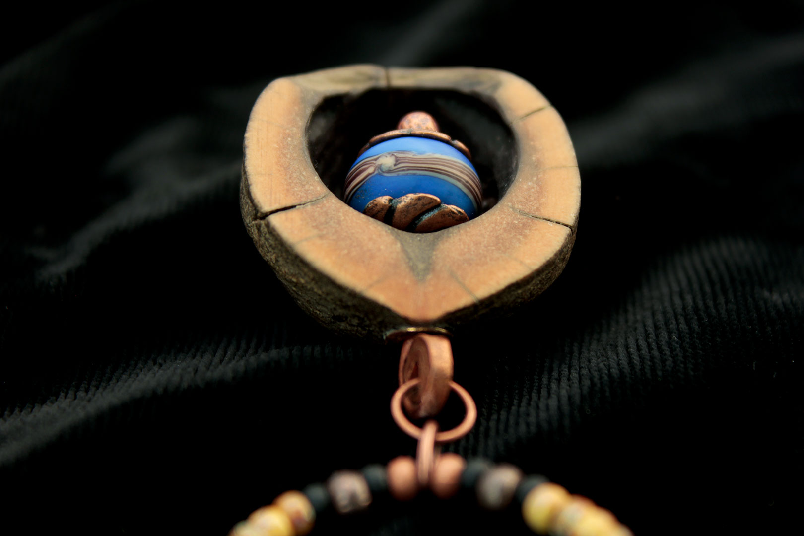 Flanked on Either Side By these Beguiling Beads, a Hickory Nut, Painstakingly Sanded to a Smooth, Waxy, Lustrous Finish, Adds an Earthy Touch to this Enchanted Ensemble. Its Warm, Tan-Brown Complexion Serves as a Bridge Between the Ethereal and the Earthly, Anchoring the Necklace in the Realm of Nature’s Embrace. The Nut, Once a Symbol of Sustenance and Resilience, Now Becomes a Symbol of Connection, Bridging the Gap Between the Mystical and the Mundane.