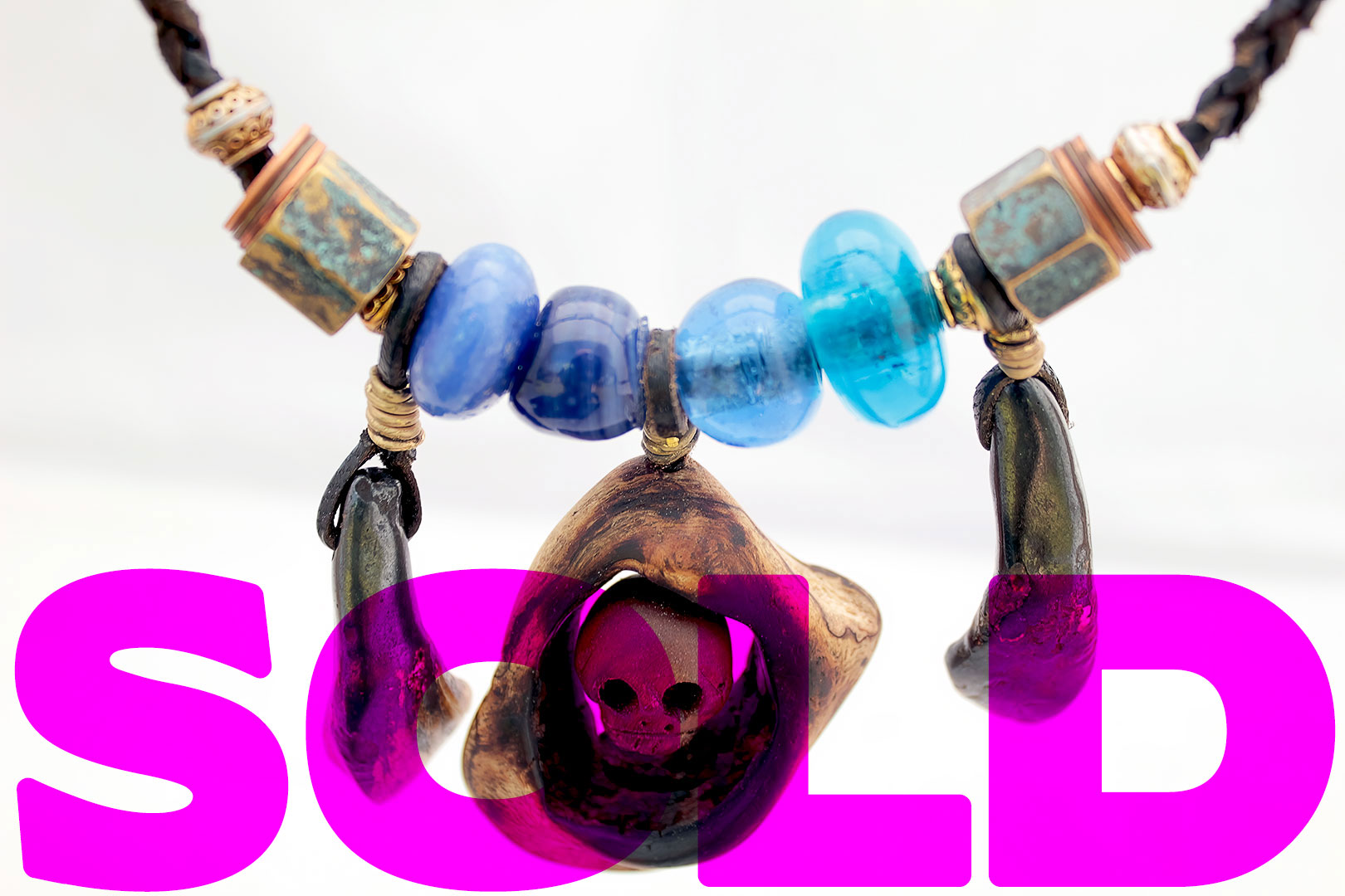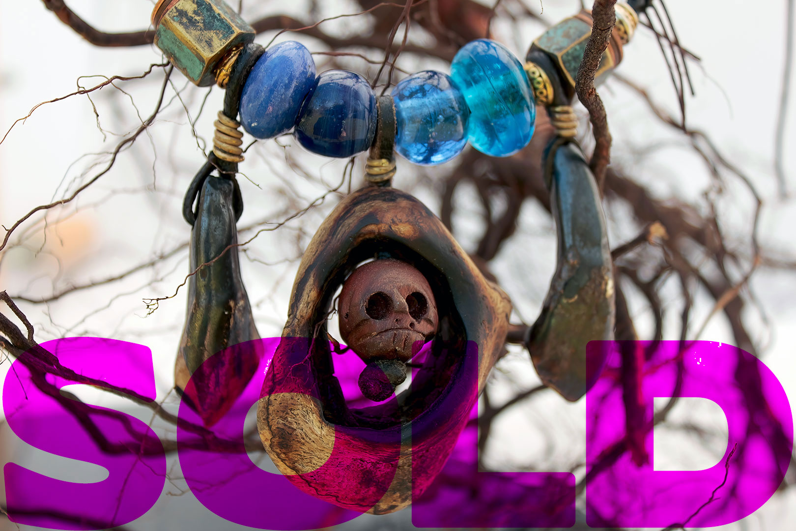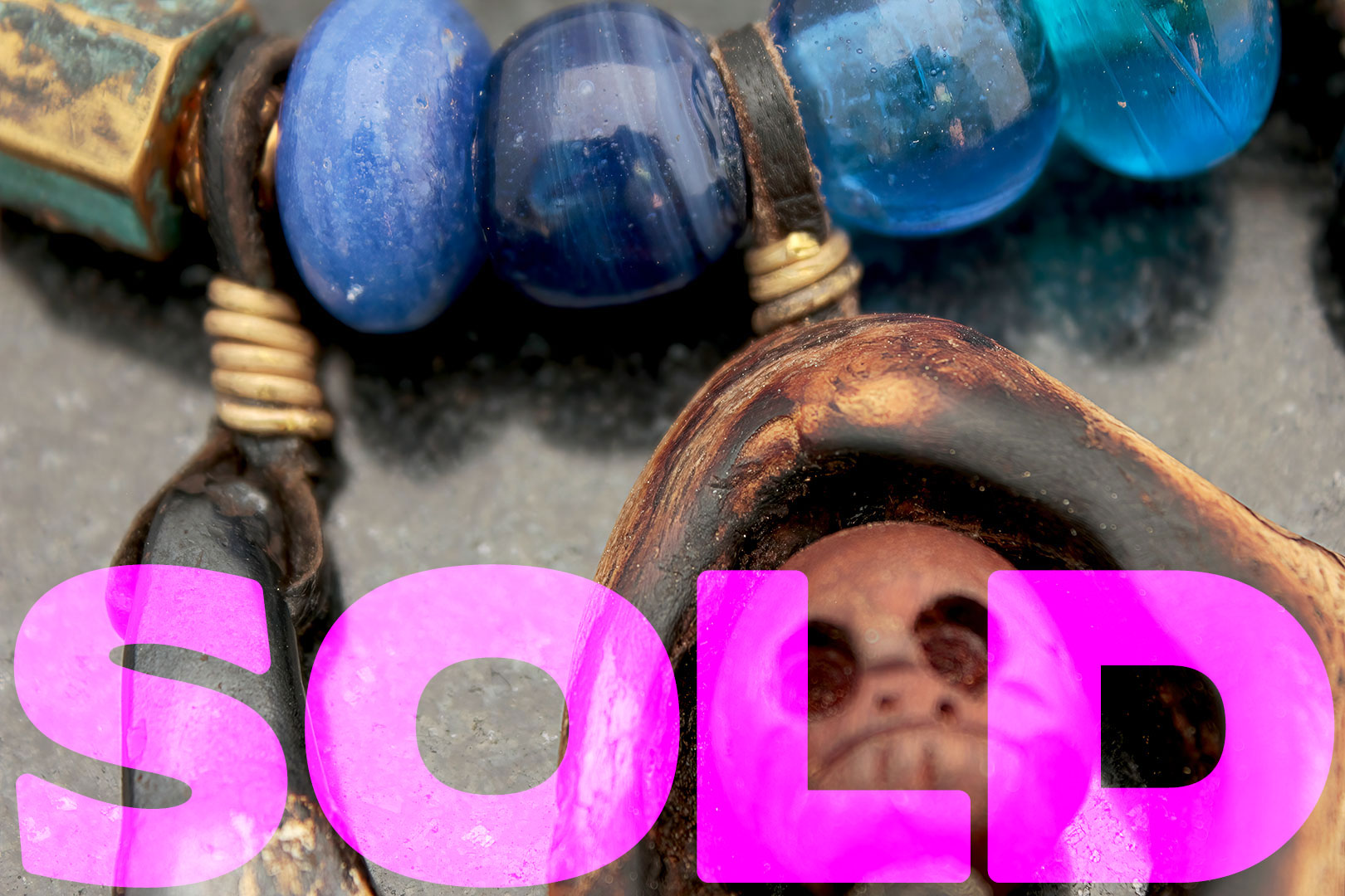 Within the Open Space of the Knot Resides a Hand-Carved Wooden Skull Bead from Indonesia, Infused with Ancestral Wisdom and Ancient Secrets. This Miniature Relic Serves as a Reminder of the Cyclical Nature of Existence, Urging Us to Embrace Change and Let Go of What No Longer Serves Us.