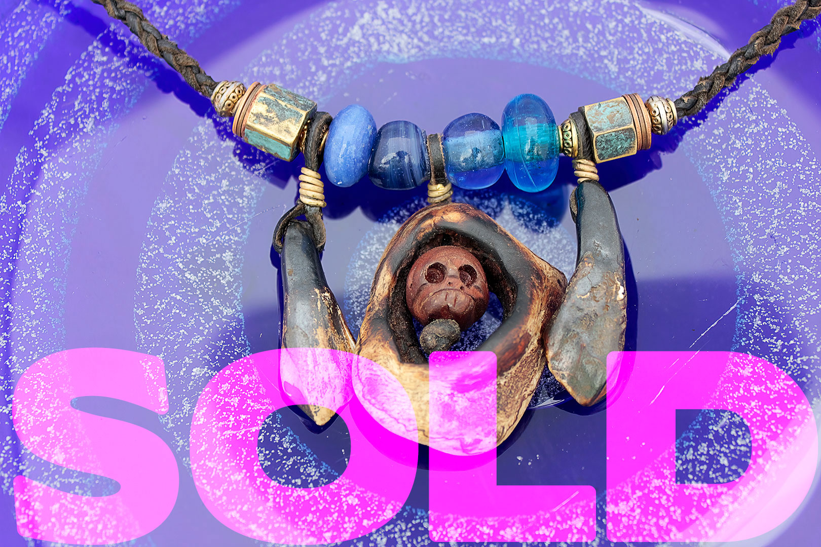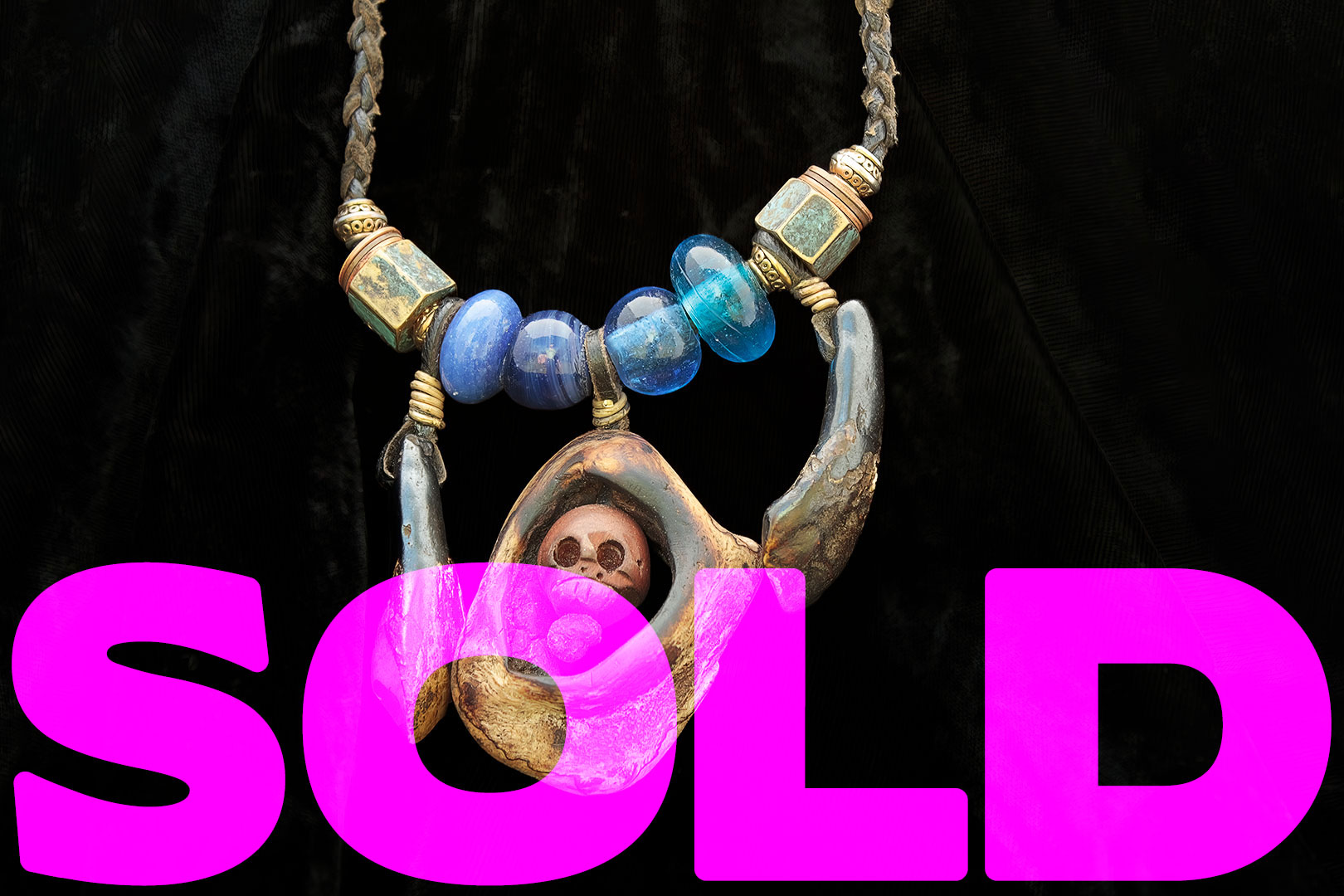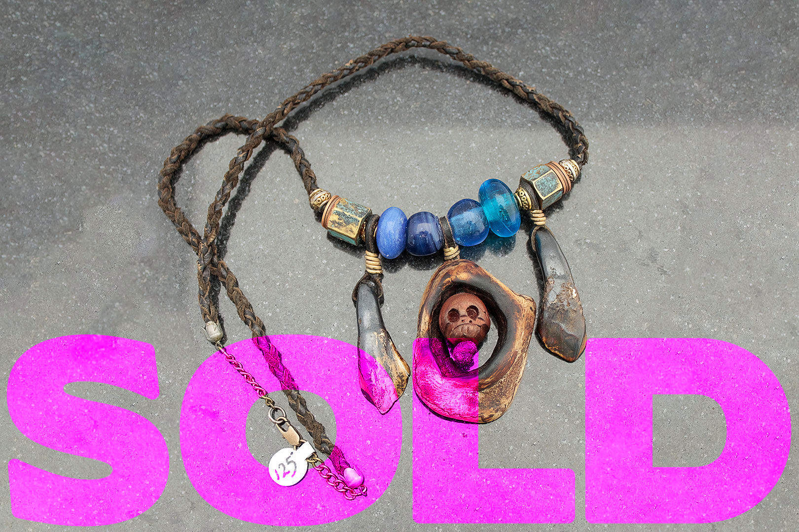 Behold, the “Medicine” Amulet, Skillfully Crafted by the Hands of Found & Altered, Imbued with Ancient Wisdom and Sacred Healing Power. This Mystical Artifact Possesses a Captivating Presence that Draws the Eye and Resonates with the Spiritual Realms.